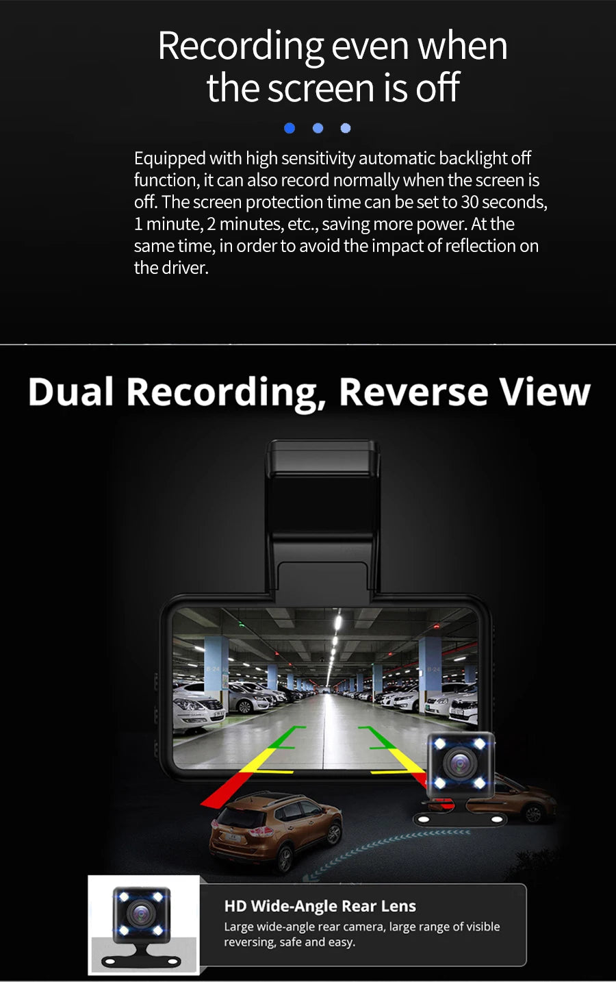 Record HD Video in 1296P mode.The Wide Angle front camera lens, can capture clear HD video. Video and audio are automatically recorded in an endless loop and saved in memory card. Record traffic incidents, scenic travel, unexpected moments or any social worthy media video.