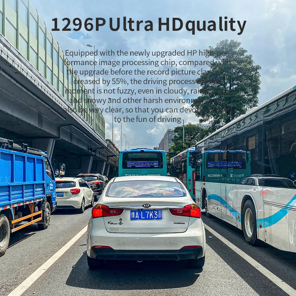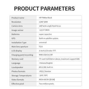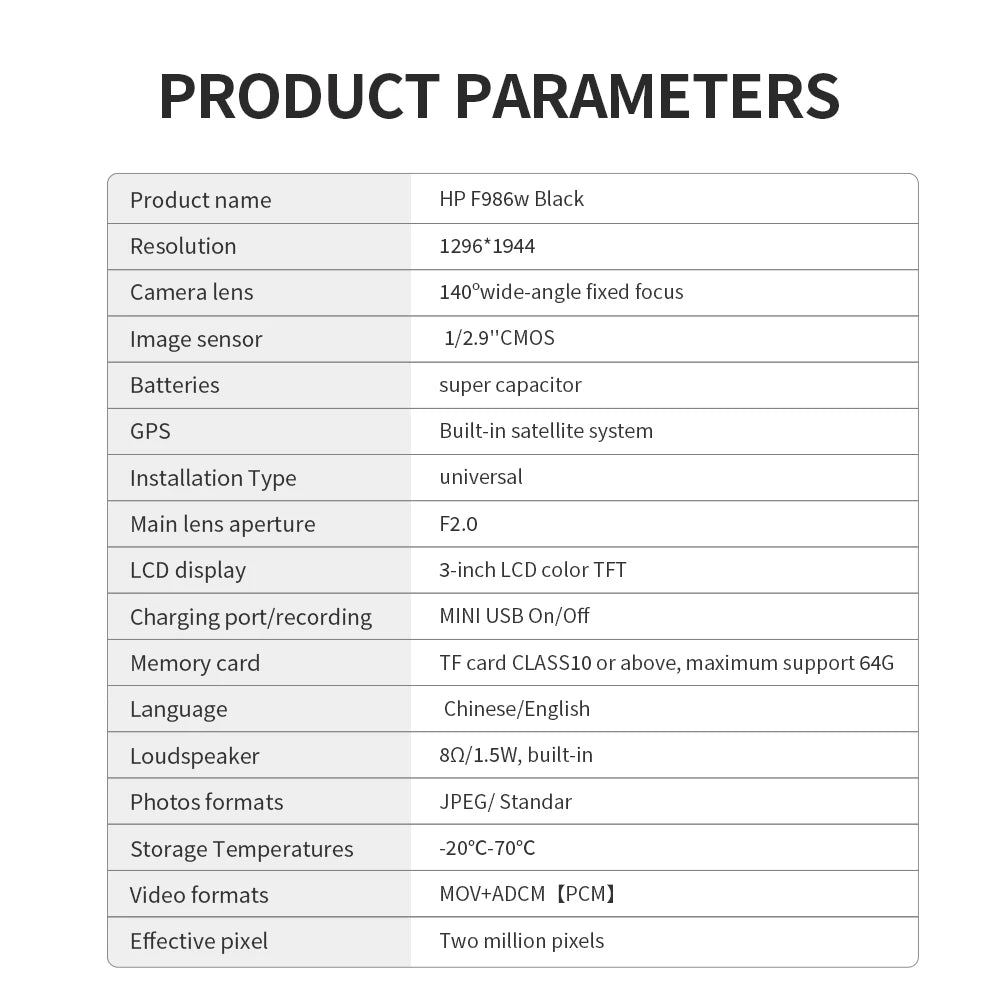 HP Car Recorder F986W 1296P Car Camera HD Night Vision Parking Monitoring Car WiFi Car DVR Video Loop Recording