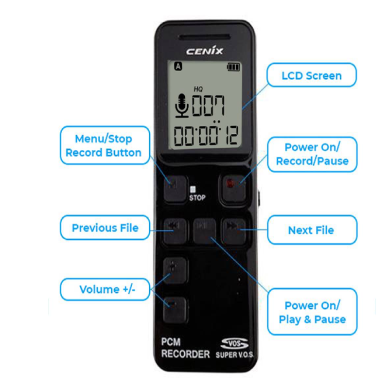 Crystal clear voice recording with the built-in embedded amplified mic.