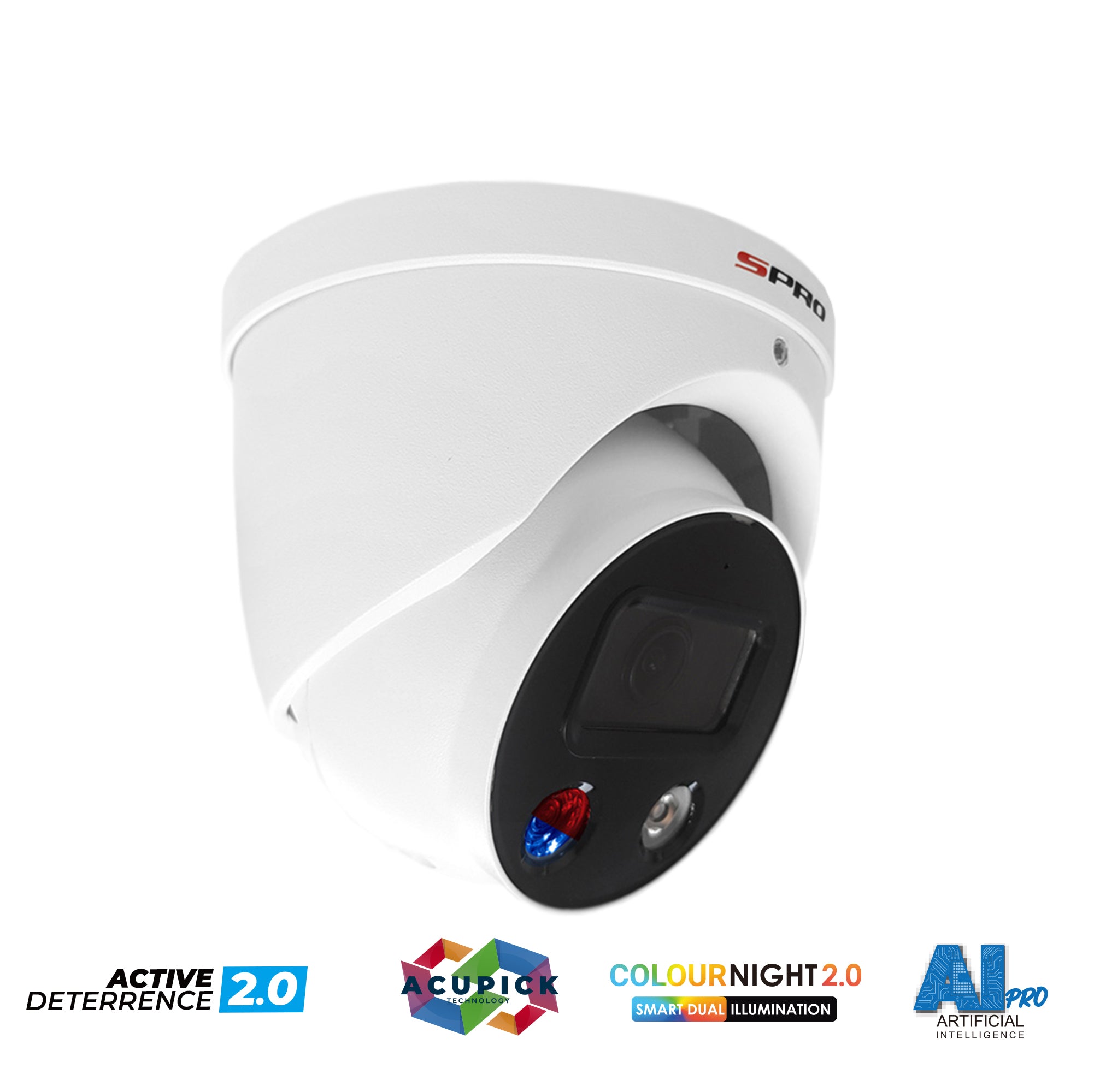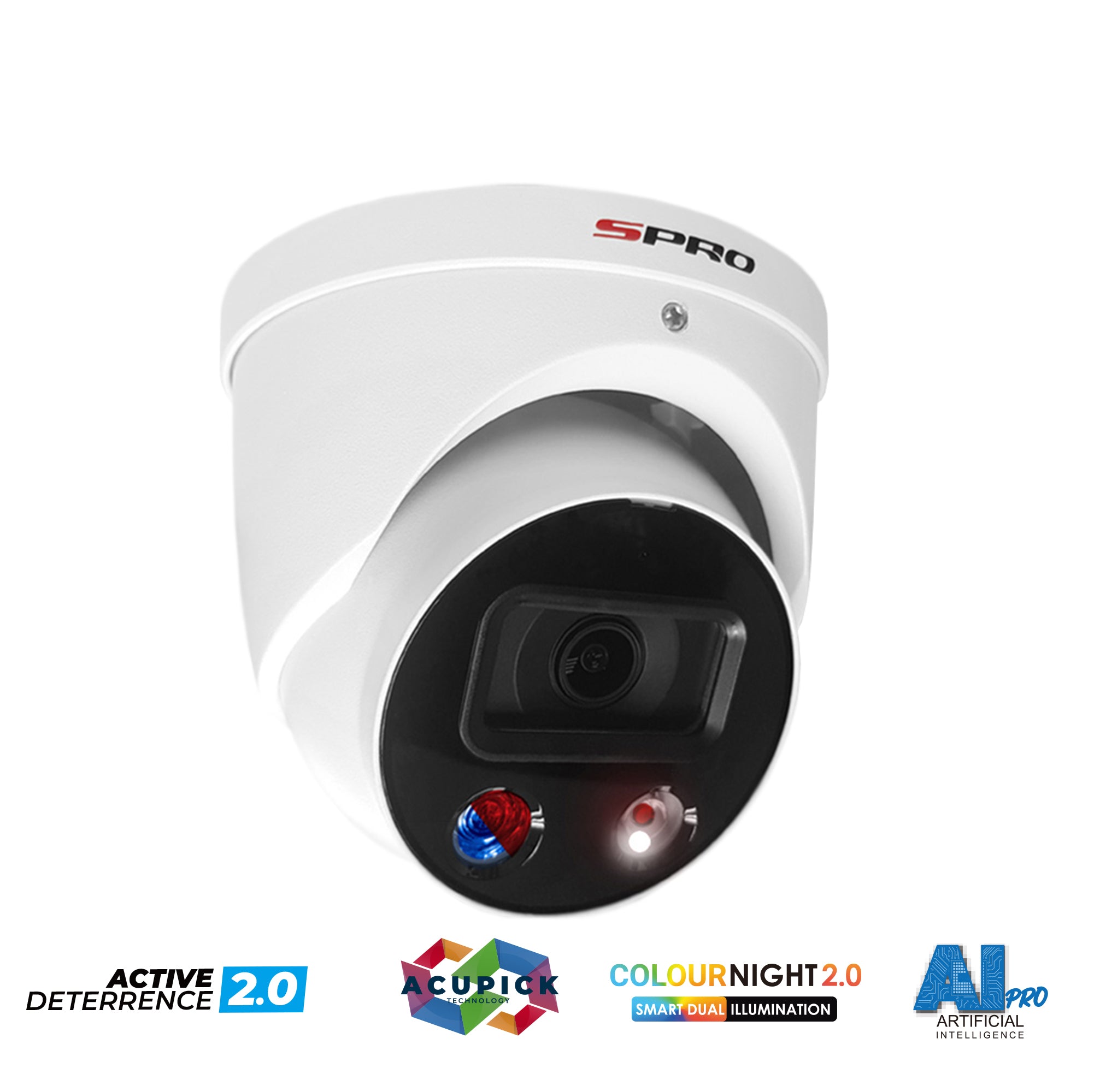 SPRO 5MP IP Smart Dual Illumination Turret with Active Deterrence and Acupick Technology
