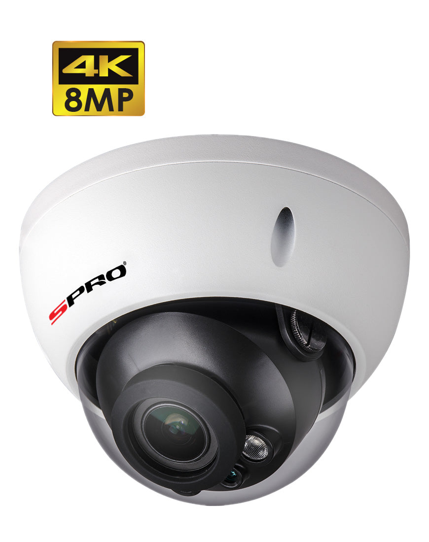 Maximize your security with the SPRO 8MP HDCVI Fixed Lens Vandal Resistant Dome CCTV Camera.