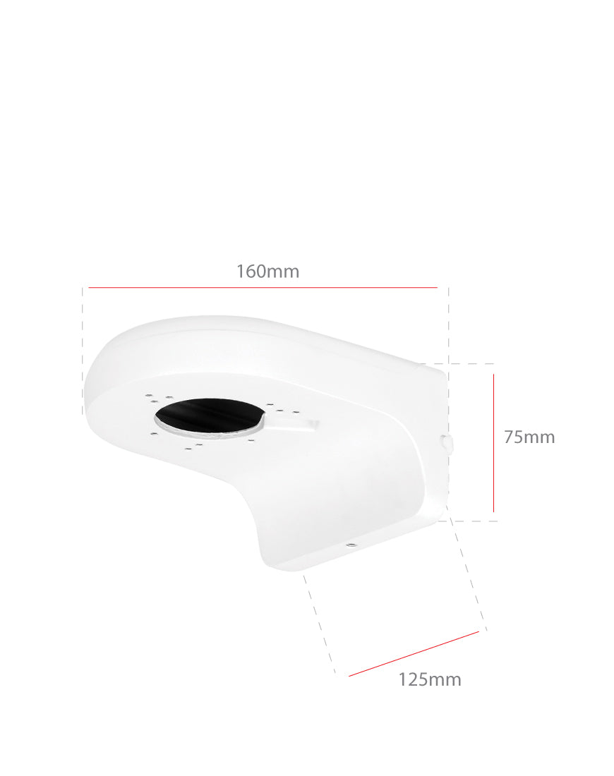 White Aluminum Wall Bracket with dimensions of 161.6 mm × 125.6 mm × 76.0 mm, ideal for versatile mounting applications.