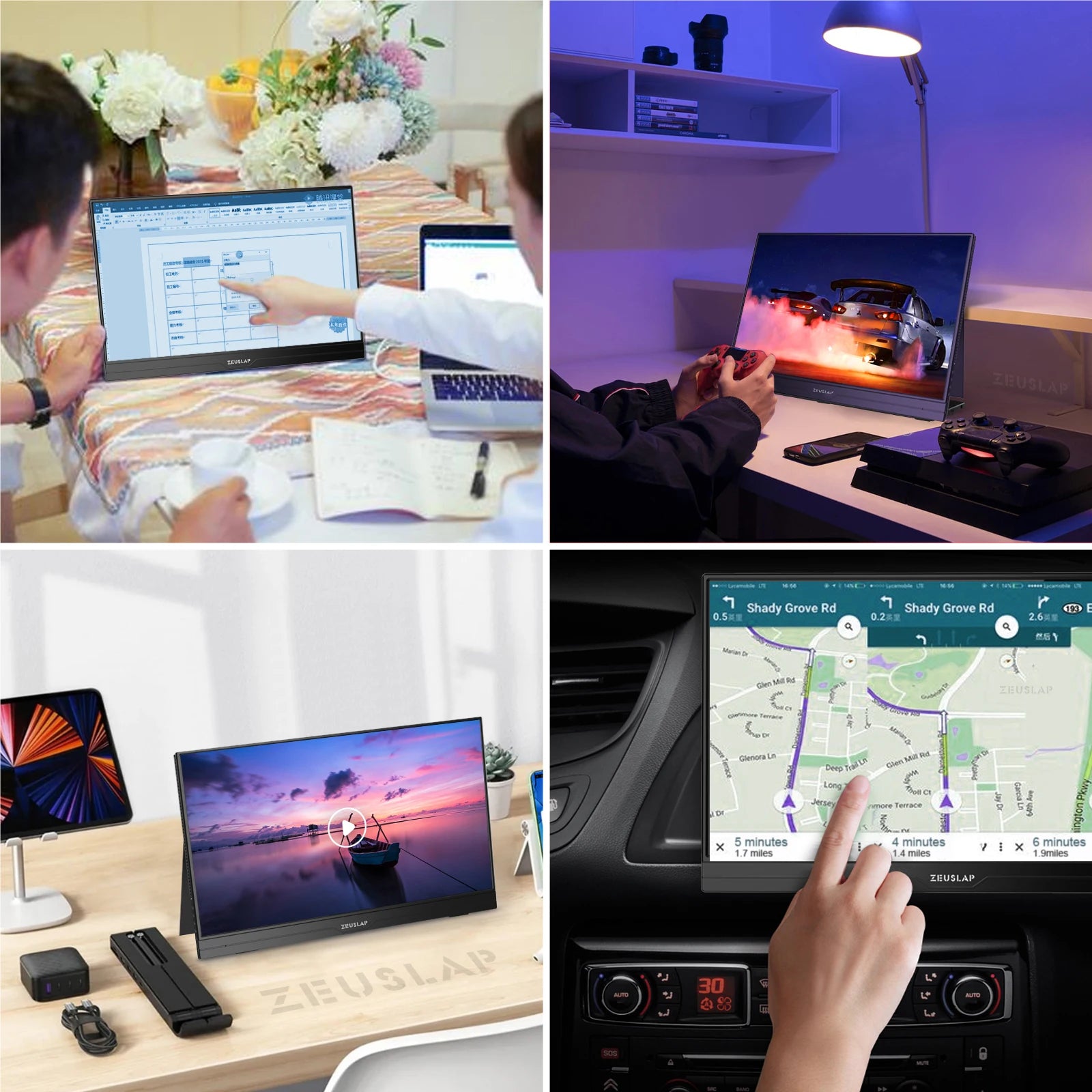 ZEUSLAP Portable Monitor Ultrathin 15.6inch Touch FHD HDR IPS USB-C for Laptop Phone Xbox CCTV Camera PS4 PS5