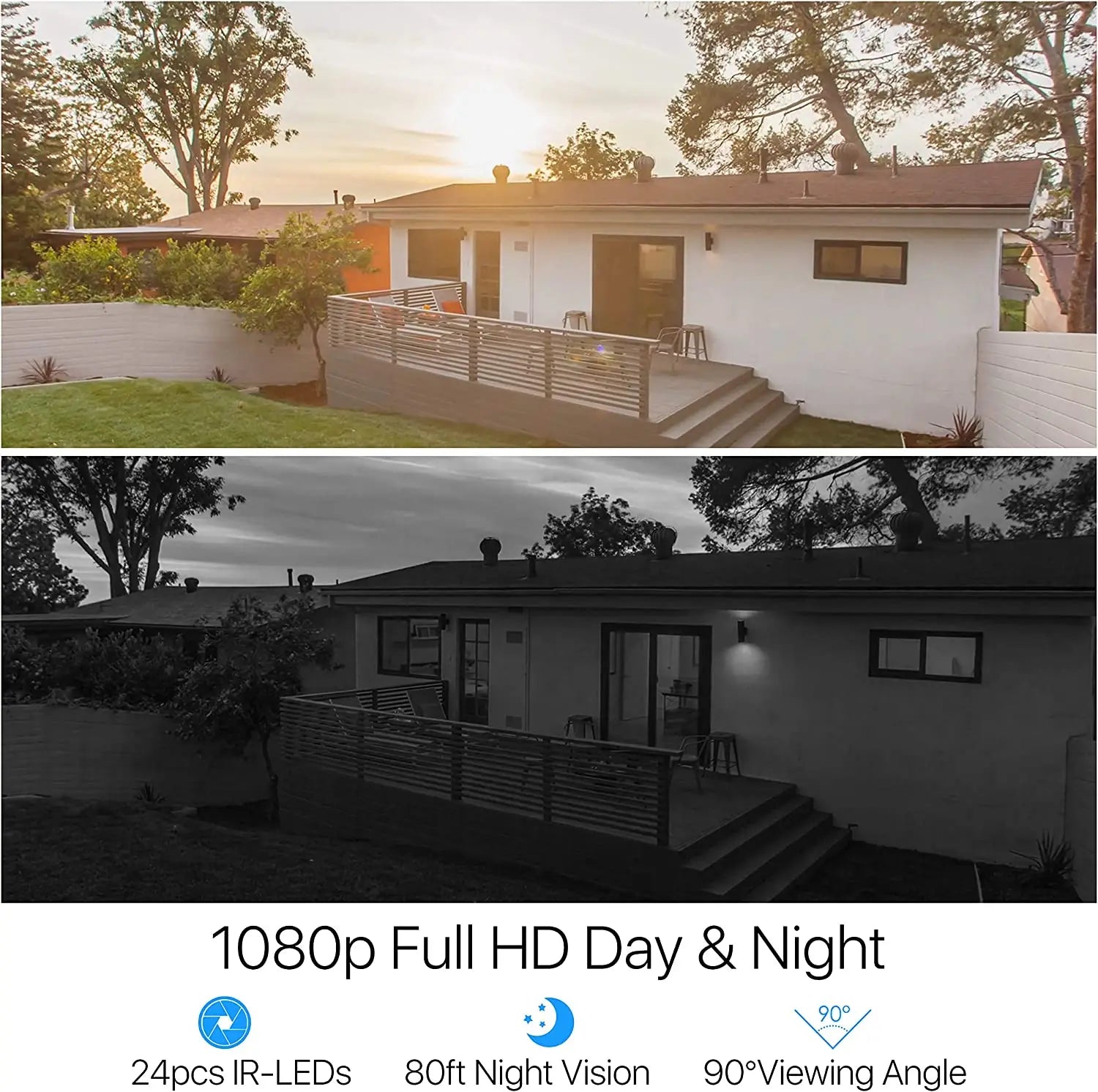 The ZOSI 1080P security camera provides up to 80 feet of night vision in complete darkness and clearly monitors vision in the dark to protect your safety. Night vision up to 130 feet in ambient light.